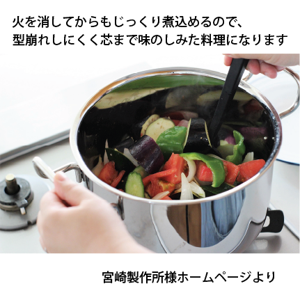 ジオ・プロダクトは、食育の第一人者服部幸應先生を招き、体の健やかさと心の豊かさを育てる「食育」を最優先に考えて開発したクッキングウェアです。(宮崎製作所様ホームページより)