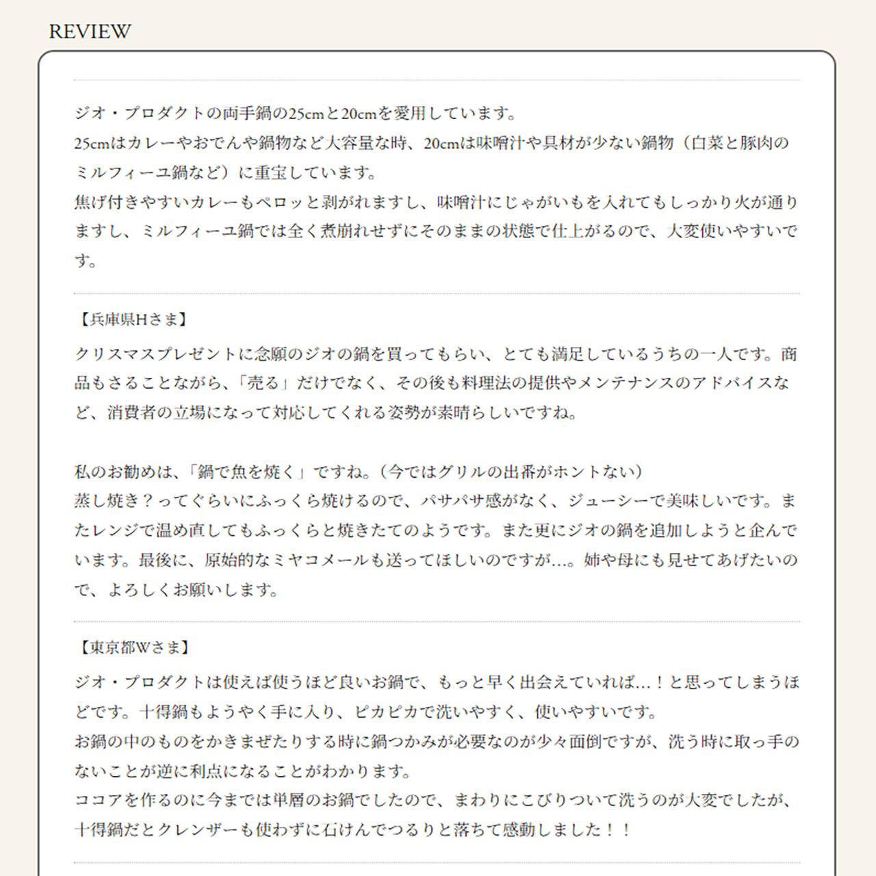 レビュー文をお読みいただければ、この鍋の優れた特性がより深く理解できることでしょう。